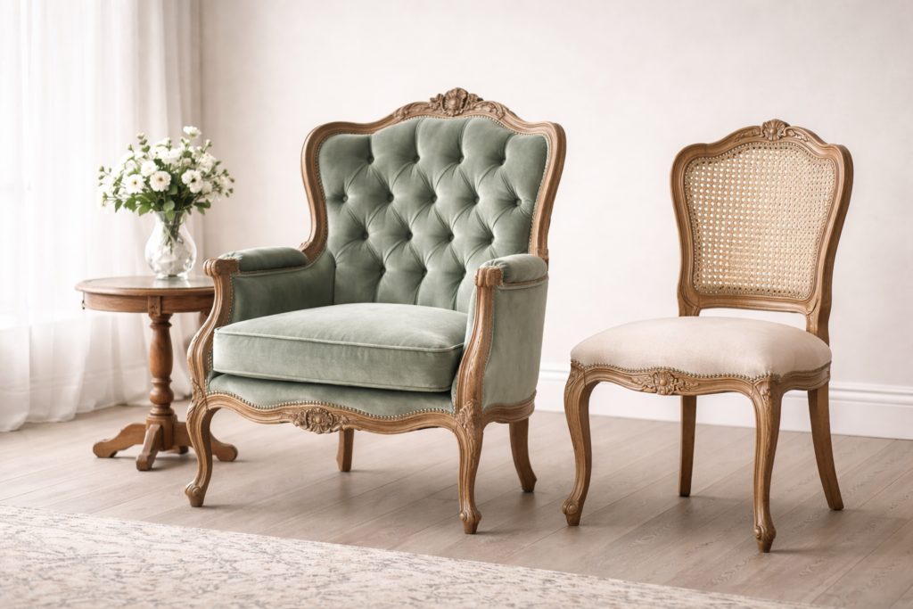 Chaque fauteuil, chaque chaise et chaque pièce de mobilier est travaillé avec minutie dans le respect des techniques traditionnelles. Nous accordons une attention particulière aux détails, aux finitions et à la qualité des matériaux afin de garantir un résultat durable et élégant.
